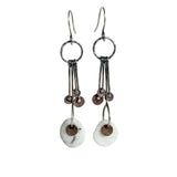 Swinging flakes of copper, hoop earrings. Hand formed in sterling silver.