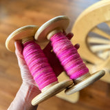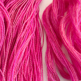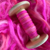 I hand dyed this beautiful and bright Kent Romney Wool top from England in shades of pinks.